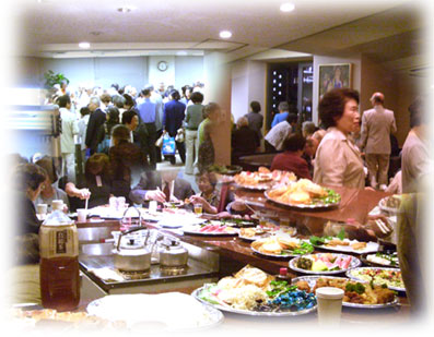 ![]() 皆勤賞の賞状とボールペン 紅白饅頭は参加賞 たくさんの参加者で、 パーティのはじめの言葉や、司会の方の言葉などはほとんど聞こえなかった。「乾杯!」という声だけが聞こえた。 リポート係としては近くへ行って撮影するべきだったのだろうが、出来ずに申し訳ありません。 たくさんのご馳走で、どれをよばれようかと迷ったほどである。ご馳走様でした。 全ての手配をしてくださった運営委員長をはじめとする運営委員のみなさま、ほんとうに有難うございました。 今後の金蘭会セミナーも今まで同様、盛んでありますようにお祈りしております。 |