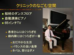 桜材のダンスフロア・自動演奏ピアノ・65インチTV設置で患者さんが