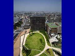 環境に配慮し、二層にして防災機能を併せ緑地化。地下に西日本