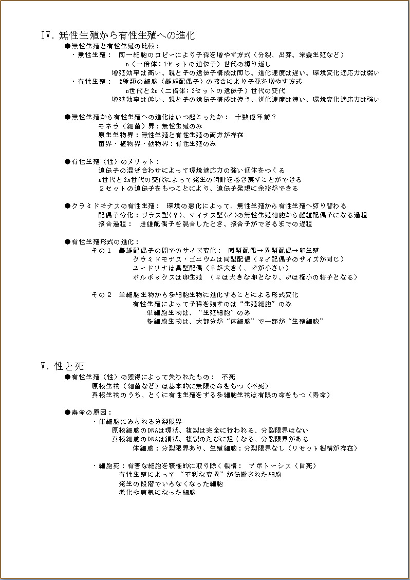 締めくくりの、有性生殖に進化した代償として不死でなくなったという話にも、改めて