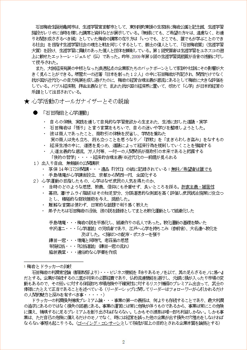 今回の「心学」に関しては、梅岩の遺した「学徳」は江戸時代の通じて多くの