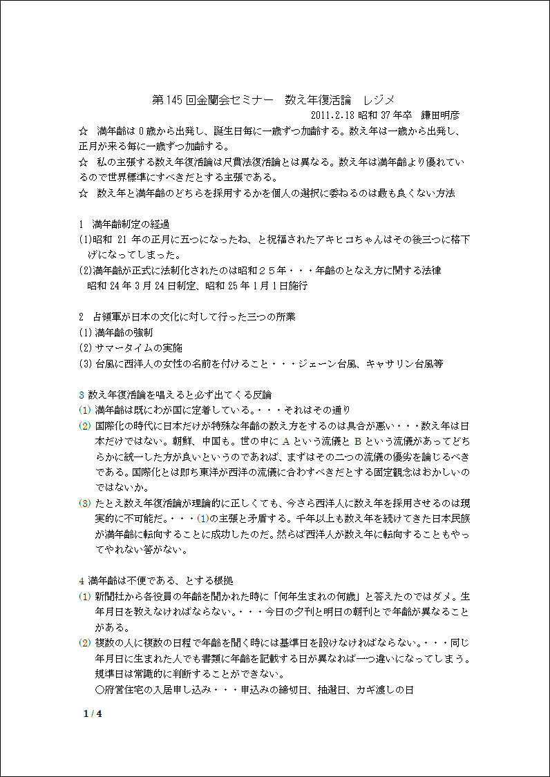 数え年復活論 ・・・数え年は満年齢よりも便利で合理的な年齢の数え方である。・・・ |