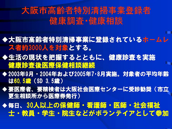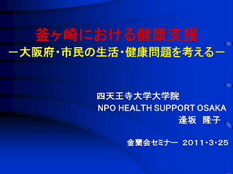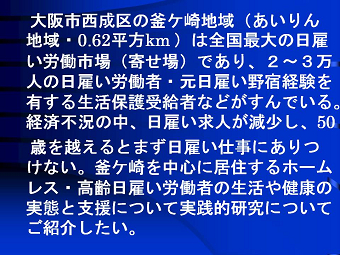 釜ケ崎における健康支援 ―大阪府・市民の生活・健康問題を考える― |