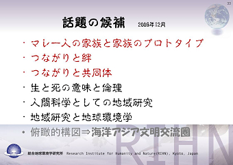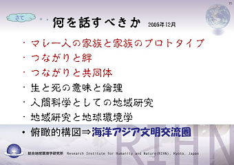 「講書始で語る―海洋アジア文明交流圏―」を拝聴して 天皇陛下に、同期の立本さんが御進講をされた内容を金蘭会セミナーで恐れ 始めに御進講の様子のお話がありました。物珍しく、興味深く聞かせて頂きま 御進講の内容は、東南アジア特にマレーシアのマラッカを中心とした海洋アジア 御進講には含まれていなかったと思われる「無縁社会」についてのお話もあり 位のクアラルンプールを首都に持つマレーシアは、九つの地域の王(スルタン)が 5年毎の輪番制で政治の実権を持たないマレーシア国王を務めるという特異な 君主制を持つ、言わば、共同態のひとつなのかな?(了)