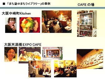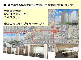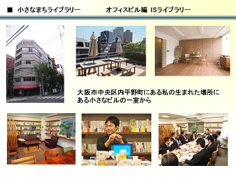 現在は、賛同者と供にその応援をパワーに、大阪、東京をはじめ、全国と結ぶ「まち塾@まちライブラリー」の構想を実行中。「100のまち、100のものがたり、10000人の元気人」を探し続けている。
