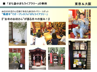 全国各地に現代版寺子屋「まち塾」とその活動拠点「まちライブラリー」の設置を呼び掛けている。