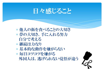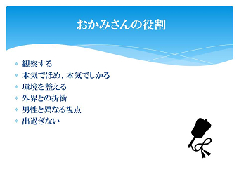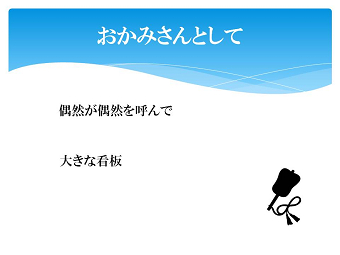おかみさんの講演を聴いて、環境が人を強くするのだと感慨深いものがありました。 あるときは、弟子の方々や結婚した弟子の奥さんの母として、あるときは、部屋の