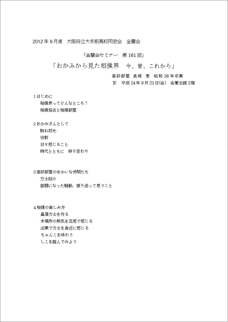 おかみから見た相撲界 〜 今、昔、これから 〜 |