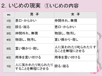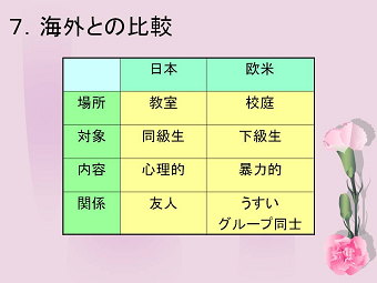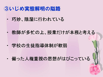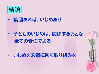 講演内容は大変充実していて、いじめの定義から始まり、原因、特徴、子供たちの