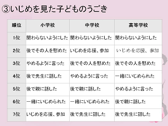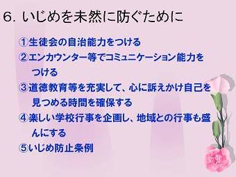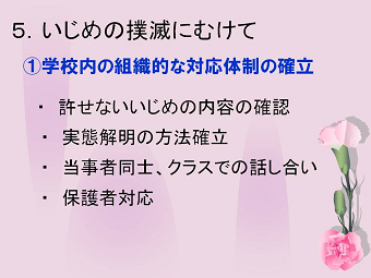 まず学校内での組織的な対応体制を確立すること、また学校が中心となっていじめ