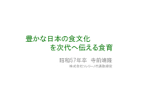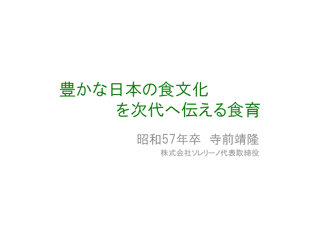 講師の寺前先輩とは何度かお目にかかり、食育や味覚教育について興味深くお話を そしてまた私たち大人も、次代の子供たちのために、日本の誇るべき食文化を丁寧に