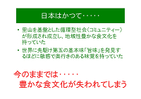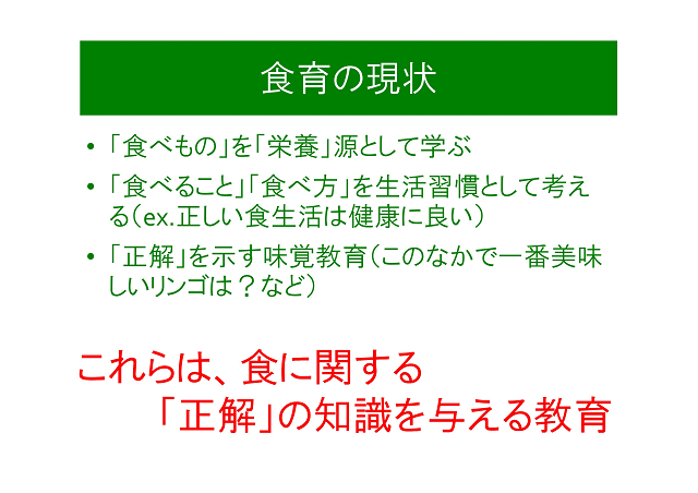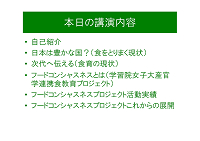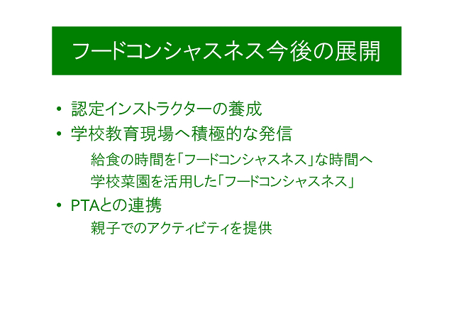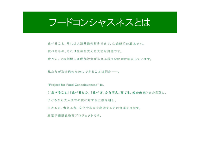 「フードコンシャスネスプロジェクトの活動紹介」 〜日本の豊かな食文化を次代へ伝えるための食育について〜 |