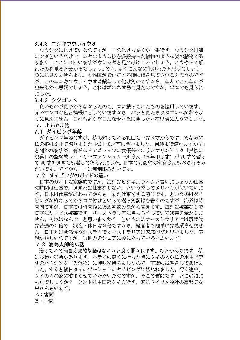 最後にダイビングにまつわるよもやま話の中で、ダイビング年齢について話されたのですが、
