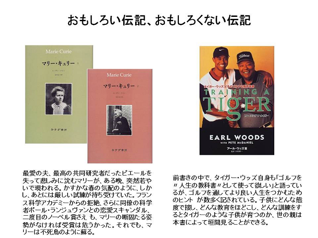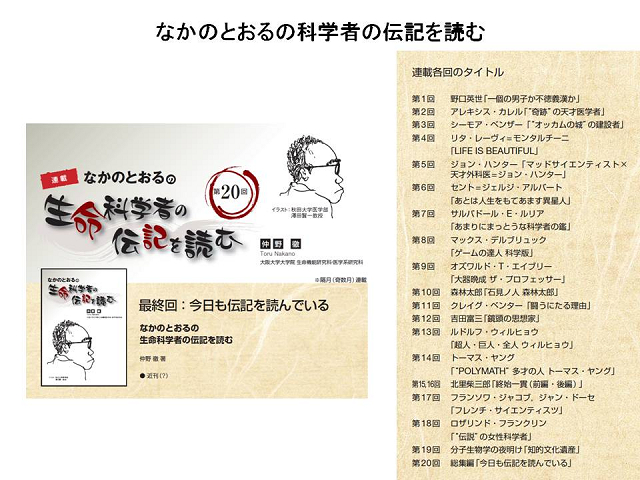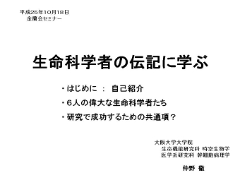 今回のセミナーのタイトル、「生命科学者の伝記に学ぶ」。