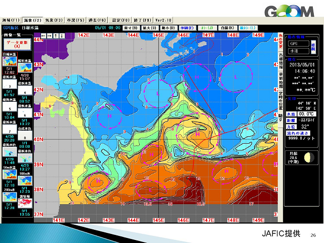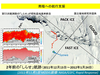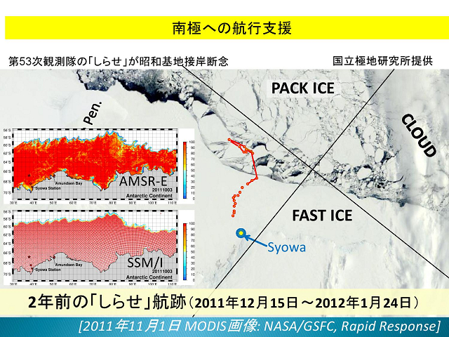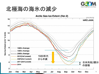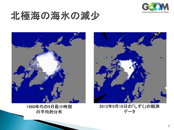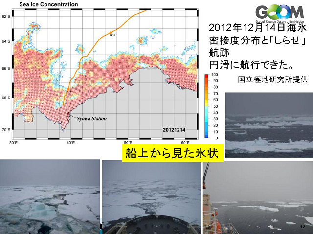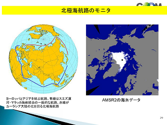 平成17年度から開発に取り組まれ、途中大震災の影響で中断を余儀なくされた 北極海や南極の氷の観測データにより航路計画が綿密にたてることができ、 さらに海面水温データはエルニーニョの現象の把握になるし、農業や漁業操業に 「宇宙から地球を診る」との演題通り、地球にいて地球の事を知るのではなく、