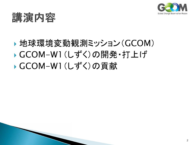 「宇宙から地球を診る」 〜地球環境変動観測ミッション(GCOM)〜 |