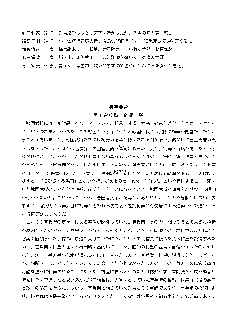 目で分析されて、梅毒罹患説をものの見事に一刀両断。 有岡城での幽閉事件が