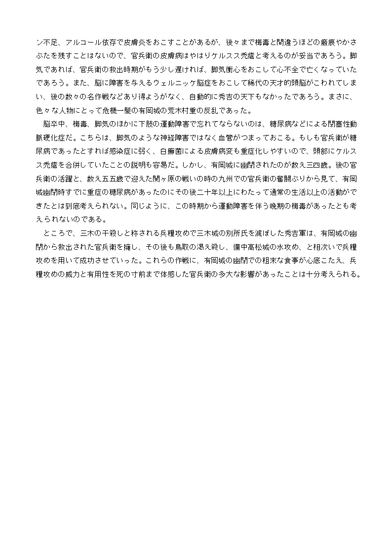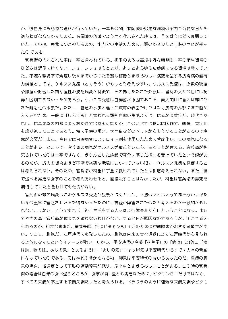 次に下肢のマヒについて、食事が質量とともに劣悪なため栄養失調だったとも考え