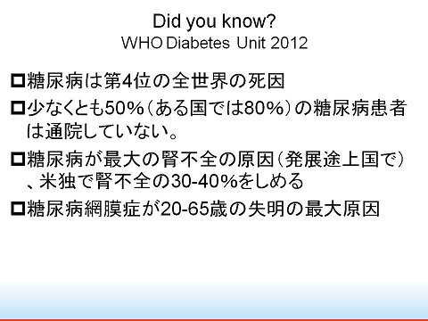 講師は、大阪市立総合医療センターの細井雅之さん。糖尿病や認知症といえば、私の