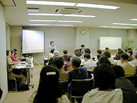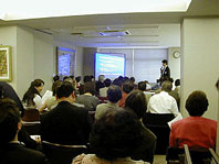 堅苦しいタイトルに反して、関西弁で話してくれる講義には、 ぐんぐん引き寄せられるものがありました。 1時間半の講義時間があっという間に過ぎた感じで、 「もっと聴きたい」と言う思いをほとんどの人が 持ったようです。 辰巳氏曰く、「インターネットには人が作るものと、 機械が作るものがあり、どちらも必要なものである」 「一つ一つのPCが神経の節のようなものであり、 情報は受け取るばかりではなく、 一人一人が発信していかなければならない。」 何年か前に政府が発表した、IT革命というものに 辰巳氏が大きくかかわっていたのではないかと 思えるぐらい、日本のインターネット の活用の普遍に努力されたようです。 「固定観念を持ってはいけない」と言う事の例として、 某大学の寮を建て直すときに、それまで分かれていた、 男子寮と女子寮を一緒にするという意見に、