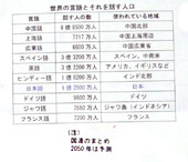 ふだんお見かけする物静かなたたずまいとは違い、林氏の語り口には説得力のある力強さを感じた。 1.なぜ英語なのか 二週間に一つずつ言語が消滅すると言われる中で、ドルが国際通貨であること、学術論文は英語で書かないと世界に認められないこと、20世紀初頭にはイギリスの植民地が世界の陸地の4分の1を占めていたこと、今のアメリカが世界一の強国である事を考えても現在の世界共通語は英語であると認めないわけにはいかない。 (しかし、栄枯盛衰は世の常、アメリカが衰退して将来、中国語や他の言語が世界共通語になるかもしれない。ただ日本語がそれにはならないことは確かだろう。) 2.世界の中の日本と日本語 単一民族に近い島国である日本は独特の文化と言語を持ち、はにかんだようにすぐに微笑む日本人は他国からは理解されにくく、「何を考えているのか分からない」と気持ち悪がられさえする。イギリスには日本が存在しない地図もある。日本語では通訳を介さないと他国とコミュニケイトできない。 3.英語を学ぶ目的・理由 ・英語はコミュニケイションのための道具であり手段である。 他国を理解し、他国に日本と日本人を理解させる。そのためには当然自国を理解しておかなければならない。日本人は英語を使ってどれだけ自分の言いたいことを相手に伝え、交渉や説得が出来るだろうか。 日本人である限りは日本語の能力以上の英語は話せる訳はない、したがって、国語にもっと力を入れるべきだと林氏は語る。 ・日本と日本人の存続のため いまや食料の半分以上は輸入に頼っている。以前の供給国であった中国、インド、ロシアなどが消費国になってきている。温暖化や森林の伐採、砂漠化など生態系が変ってきている状態でもし戦争にでもなったら、どういうことになるのだろう。 核なし、石油なし、食料の半分は手に入らない・・・考えただけでぞっとする。 そのようなことになる前に世界の要人達を相手に丁々発止と渡り合えるだけの見識と英語力を持った人物をもっと育てることが急務である。。 4.どのように英語を学ぶか。 ・自分で考える力ー主体性を養わねばならない。国語が基礎になる。 ・相手の立場に立てるかー客観性(異質なものを排除しない) 第二次世界大戦のとき、アメリカは敵を知るにはまず言語からと優秀な大学生を集めて日本語の勉強をさせた。したがって日本軍の無線など全て解読されていたという。敵性語だからと英語を使う事を禁止した日本との違いはどうだろう。 ・英語の背景(文化・社会)を知るー異文化理解 多様な価値観が存在する世界では「絶対」とか「間違いない」という概念は存在しない。 ・三週間で英語がしゃべれるようになる脅威の英文法、などという書物が店頭に並んでいたりするが、そういうことはありえないということは「日本語が三週間で理解できるか」と考えれば分かるだろう。 5.日本語と英語の違いー民族・文化の違い 語族、書記体系、音韻体系、統語、思考構造、皆違う。 例えば5番目の画像「耳に聞こえない音は発音できない」(トマティス 仏 言語・音声学者の資料)によると、日本語は125〜1500Hzであるのに対して、英語(右上)は2000〜12000Hz、フランス語(左上)は100〜300Hzと1000〜2000Hzとの2箇所に分かれている。ドイツ語(右下)は100〜3000Hzで、スラブ系言語(左下)はなんと100〜8000Hzの広範囲を網羅している。これは、スラブ系の人の中に語学の天才がいることや、日本人やフランス人が英語が苦手な理由の一つと言えるであろう。 ・論理的vsあいまい ・同じ言葉でも意味するものは・・・例えば慈悲や情けの考え方。 ・英語に訳すと悪い意味になるものも商品名にする不思議 ポカリスエット(汗なんか汚くて飲めない)、クリープ(同発音のcreepとなると「虫唾がはしる」という意味になる)。 ・訳せない日本語、訳せない英語 「どうぞよろしくお願いします」「失礼しました」「頑張って」などそのまま英訳しても使えない。 ・和製英語は日本語。 和製英語などと「英語」という言葉がついているために英語かと思っている学生がいる。 ・気をつけたいこと ありすぎてとても書ききれないが、一つだけ。お互いの思い違いでトラブルが起きた場合、日本人は「ま、いいか」と十分に申し開きをせずに"I'm sorry."といってしまうが、それは自分が悪いと認めたことになるので、してはいけないことの一つである。 とても1時間半では足りなかった講義、林先生にはぜひともまた話していただきたい。期待しています。 |