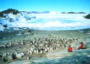 アデリーペンギン。卵は前半はオスが抱く。だからメスが餌を取りに行く。 |