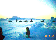 | 集団で子育て中。12月から2月頃まで卵を抱く。 | 皇帝ペンギンのカップル。 この姿が見え始めると冬が近い事を意味するらしい。 |