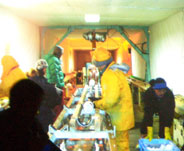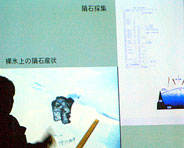 2006.1.24 3000mの氷床掘削に成功。岩盤までは届かなかったが、それには理由がある。岩盤に近づくほどマグマからの熱を受け、氷が溶けかけているらしい。 |