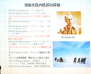 | 1898-1900アデア岬で人類最初の越冬。 | 1912年白瀬南極探検隊が日本人で初めて南極大陸を探検した。日本の南極観測のきっかけになった。 | 1946年、アメリカのリチャード・バードによる「ハイジャンプ作戦」。第2次世界大戦に開発された機器の試験、人員の訓練、航空機による大陸沿岸の60%の写真撮影。 | 黒い線が日本からの航路。 |