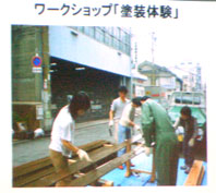| 古い表長屋(おもてながや)をリノベーション(再生)した。 | ワークショップと称して、ボランティアで塗装体験をしてもらった。 | 同じく左官体験。めったに出来ない体験。 |